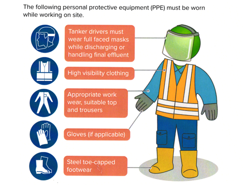 We would like to remind you of the PPE requirements when discharging liquid waste at any of our sites: the use of steel toe-capped footwear, high-visibility clothing, and FULL-FACE SHIELD MASKS while discharging is mandatory.